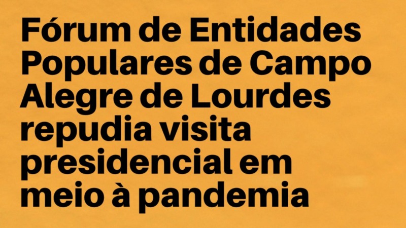 Fórum de Entidades Populares de Campo Alegre de Lourdes repudia visita presidencial em meio à pandemia